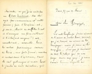 Il aurait encore mille choses à lui dire, mais il est au moment de partir pour la campagne. Cependant «tout ce que vous avez tracé là est si net et demeure si bien présent à l'esprit, que je ne crains pas de rien avoir oublié, cet hiver, quand nous nous reverrons chez ZOLA»...