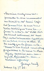 L.A.S. «George Sand», Nohant 29 septembre 1856, [à Léon LAURENTPICHAT]; 1 page in-8.