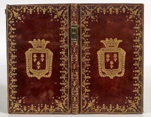 Propriétaires & Fermiers. Paris, Visse, 1788. In-8° : [2]-120 pp.; 4 h.-t. (qqs coins pliés). Rel. armoriée : plein maroquin rouge, denteile fleuronnée dorée cernant les armoiries sur les plats, dos lisse à caissons fleuronnés dorés et étiq. de cuir vert, filet et roul. dorés sur les coupes et remplis, gardes de papier bleu roi, tranches dorées (coins nus, mors et coiffes et partiellement les plats frottés, gorge int. faible). Édition originale par le député Latouche dit Le Vassor, député à l'Assemblée Nationale. Exemplaire aux armes de la famille du dédicataire de l'ouvrage, le marquis d'Ormesson, conseiller d'état. Au XVIII, s., la conquête des marais tient pnncipaiement à des raisonshygiénistes mais aussi à des raisons socio-écoomiques. Hormis quelques initiatives privées, ce furent les seigneuries religieuses et laïques qui firent les travaux de poldérisations et assèchements jusqu'à ce que cela devienne un enjeu pour la monarchie, ceci dès le règne d'Henri IV mais avec un véritable engagement sous Louis XV. # Quérard, Fr. Litt., V-271; # pas dans Kress ni Einaudi. Provenance : Louis-Ferdinand-de-Paule Le Fèvre d'Ormesson (1718-1789), avocat du Roi et président à mortier. Joint : Breviarium Mirapiscense [...] Pars aestiva. Parisiis, Garnier & Le Prieur, 1753, in-8° plein maroquin rouge, dentelle dorée cernant les plats, dos lisse fleuronné doré avec étiq. de cuir vert, coupes et remplis fleuronnés dorés, gardes de papier bleu, tranches dorées (ombres blanches sur les plats). # Bohatta 2440.