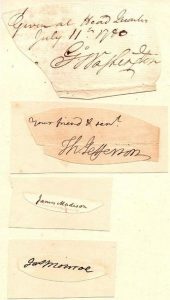 4 signatures de Présidents des États-Unis; découpées et contrecollées sur un feuillet in-4.