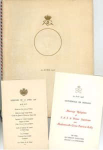 3 imprimés relatifs au mariage de RAINIER III et de Grace KELLY 18-19 avril 1956.