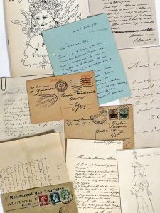 la mine de plomb signé "Sous la toise" à Ch. Somville, env. timbrée cons. : figurant un jeune homme prêt à être enrölé (?).— PORTAELS, Jean-Frangois (1818-1895).- 1 l.a.s. in-12° à liseré noir, s.d. : tableau qu’il souhaiter faire lithographier.— MADOU, Jean-Baptitste (1796-1877).- 1 l.a.s. in-16° à P. Lauters, c. 1830 : "Vanderdonck doit venir voir le dessin à son retour de Paris mardi ou mercredi, j’ai voulu lui montrer tout à faire terminé. Aussitot qu’il sera décidé vous le saurez. S’il ne le prend pas, vous le recevrez immédiatement [...].— RULOT, Joseph (1853-1919).- 1 l.a.s. in-12° à l’échevin de l’Instruction publique, Alfred Micha (1845-1925), 1893 : sur la sculpture "Sysiphe".— MATHIEU, Paul (1872- 1932).- 1 l.a.s. in-12° à Al. Micha), 1906 : "J’apprends par un de mes amis que la ville de Liège est désireuse d’acquérir des oeuvres d’art importantes pour son musée. J’expose en ce moment au Cercle artistique et littéraire de Bruxelles et j’ai l’honneur de vous inviter [...]".— HEINTZ, Richard (1871- 1929).- 2 l.a.s. in-8° et in-4° sur 6 pp., 1925 et 1926 : une avec commandes à V. Bourguignon de châssis et couleurs.— 9 l.a.s. ou cartes (dont une avec le cachet "Ctr. militarische Überwachungsstelle. Lüttich") à Georges de Froidcourt (1885-1972), 1915-1942, de : Joseph Zomers (évoque un buste commencé de l’historien), José Wolff (2 dont une évoquant la malhonnêteté du marchand Hermans), Marcel Caron, Eugène Bouffa, Georges Petit et Jean Hodru.— FREY, Alice (1895-19841), sculptrice ayant travaillé avec Ensor.- 1 l.a.s. in-12° à Anna Martens, 1944 : remerciements pour un article (+ un catalogue d’exposition "Alice Frey. Trente années de peinture" tenue à la Galerie Georges Giroux du 26-10 au 12-11-57). Le reste de Cesare dell’Acqua (place pour le Salon des Aquarelles), C. Carton de Wiart (resitution d’un tableau), Jan van Beers, Jean Carolus, Paul Lauters, Georges Petit, Charles Verlat ("La petite Louise Sneyders sert de modèle à l’Académie []").