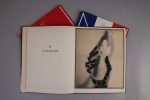 IRIBE. Blanc er Rouge. Rose et Noir. Bleu, blanc, rouge. Textes de Montorgueil, René Benjamin. Dessins de Paul Iribe. Paris, Edité par Nicolas, Draeger imprimeur. 1930, 1931, 1932. 3 volumes petit-in-folio, brochés. (3 coiffes frottées). Bons exemplaires. (Joint :) Martin : Le service des vins doit être une symphonie. Publicité illustrée imprimée par Draeger. (Vers 1930).