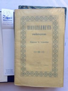 LAMARTINE, Alphonse de . Recueillements poétiques. Paris, Gosselin, 1839. In-8, broché, couvertures conservées. Chemise en 1/2 percaline et étui. (Les gardes volantes ont été changées) Edition originale, sans mention d'édition. Bel exemplaire soigneusement lavé et rebroché. "Ouvrage rare et très important." (Carteret, II, 22.) " Assez rare sans mention d'édition" (Clouzot, p.103)