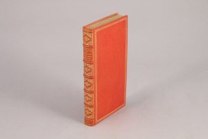 LA ROCHEFOUCAULD, François de. Réflexions ou sentences et maximes morales. Cinquième édition augmentée de plus de cent nouvelles maximes. Paris, Claude Barbin, 1678. In-12, (4 feuillets, le premier étant blanc), 195 pages, (6 ff). Plein maroquin rose orangé, triple filet d'éncadrement, dos à nerfs richement orné dans les caissons, filet sur les coupes, large bordure intérieure composée de roulettes et de filets droits et aux pointillés ; toutes tranches dorées. Reliure signée Marcel Godillot. Cinquième édition originale, et dernière édition publiée du vivant de l'auteur. Elle renferme 504 maximes, dont 91 qui paraissent ici pour la première fois. Très bel exemplaire, lavé et établi par l'excellent Godillot, vers 1950. (Tchemerzine, VII, 58).