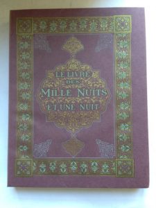 LE LIVRE DES MILLE ET UNE NUITS. Le Livre des Mille Nuits et Une Nuit. Traduction littérale complète du texte arabe par le Dr. J.C. Mardrus. Illustrations de Léon Carré. Décoration et ornements de Racim Mohammed. Paris, Editions d'Art Piazza, 1926-1932. 12 volumes grand in-4° (300 X 230 mm), brochés, couvertures illustrées vieux-rose ; étui vieux-rose à décor d'arabesques florales. (Dos des volumes légèrement insolés.) Bel exemplaire de cet ouvrage célèbre, illustré de 144 planches hors-texte en couleurs, par Léon Carré (Granville 1878 -Alger 1942), de 85 compositions orientalistes à pleine page, bandeaux, culs-de-lampe, et ornements divers par Mohammed Racim (Alger 1896 - mort assassiné à Alger en 1975). Tirage à 2500 exemplaires ; celui-ci 1/2200 sur vélin pur chiffon (n°846).