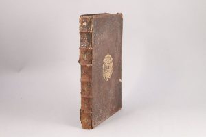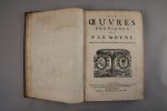 LE MOYNE, Pierre (1602-1672). Les Oeuvres poétiques du P. Le Moyne, enrichies de très-belles figures en taille-douce. A Paris, chez Thomas Jolly, 1672. Grand in-folio, (frontispice) gravé par Scotin d'après Mignard, (18 feuillets) dont le titre, portrait et figure hors-texte, 450 pages, (1f). Plein veau du temps. Grandes armes au centre des plats, à cinq croissants de gueule. (Reliure solide, mais très endommagée. Epidermures, coins et coiffes élimés ; mors fendus etc... Rousseurs. Mouillures très marquées, mais saines, dans tout l'ouvrage.) Remarquable illustration baroque comprenant le frontispice et 20 figures à pleine page, non signées, comprises dans la pagination, au verso blanc. Culs-de-lampes et en-têtes gravés. (Tchemerzine, Livres à figures édités en France au XVIIème siècle, pages 283 à 285, indique par erreur un format in-8).