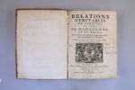 MADAGASCAR ET BRESIL. Relations veritables et curieuses de l'Isle de Madagascar et du Bresil. Avec l'histoire de la derniere guerre faite au Bresil, entre les Portugais et les Hollandais. Trois relations d'Egypte, & une du Royaume de Perse. A Paris, chez Augustin Courbé, 1651. 3 parties, avec titres pour les deux premières et titre courant pour la troisième, en 1 volume in-4°. Daim retourné ; reliure du temps. (Quelques taches sur la reliure. Mouillures saines mais fortes dans 1/3 de l'ouvrage ; quelques rousseurs et salissures. Petite galerie de ver dans quelques marges intérieures). Collation : (7 ff dont le titre ), 307 pages, carte hors-texte de l'Isle de Madagascar ou de St Laurent. (10 ff dont le titre), 212 pages, Plan hors-texte du Reciff sur double page. (Faux-titre), 3-158 pages. Rare édition originale de ces sept relations de voyages - "Relation du Voyage que François Cauche de Rouen a fait à Madagascar, Isles adjacentes et coste d'Afrique. Recueilly par le Sieur Morisot, avec des notes en marge". (Première partie, I, 1-193). Cette partie se termine par un petit manuel de conversation franco-malgache . ("Colloque entre le Madagascarois et le François .. pour se faire entendre et être entendu d'eux") et par un court lexique. Arrivé sur le vaisseau du Capitaine Goubert au début de l'été 1635, Cauche resta dans l'île avec six compagnons seulement. Ils furent expulsés en avril 1643 par le protestant Jacques Pronis, nommé gouverneur de 'île, avant d'être le second de Flacourt. - "Relation du Voyage de Roulox-Baro, interprète et ambassadeur ordinaire de la Compagnie des Indes d'Occident ... au Pays des Tapuis dans la terre ferme du Brasil. Commencé le 3ème avril 1647 et finy le 14ème juillet de la mesme année. Traduict d'Hollandois en François par Pierre Moreau de Paray en Charolois". (Ière partie, 195-307). - "Histoire des derniers troubles du Bresil entre les Hollandois et les Portugais. Par Pierre Moreau, natif de la Ville de Parrey en Charolois". (IIème partie). Pierre Moreau (1620-1660), d'une modeste famille protestante, s'engage en 1640 dans l'armée hollandaise. Remarquablement doué pour les langues étrangères, il est nommé en 1646 secrétaire de Michel van Goch, l'un des quatre gouverneurs du Brésil. Son ouvrage servira au XVIIIème siècle de référence aux Encyclopédistes sur l'anti-esclavagisme. - "Trois relations d'Aegypte et autres Mémoires curieux des singularitez dudit pays". (IIIème partie. 1-100) - "Relation d'un voyage de Perse faict ès annéees 1598-1599 par un Gentilhome de la suite du Seigneur Scierley Ambassadeur du Roy d'Angleterre". .( Réf : Borba de Moraes, 594-596 ; Sabin, 50579 et 50724 : Leclerc, 1291);
