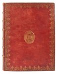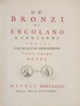 ANTICHITÀ DI ERCOLANO. (Par Ottavio Antonio Bajardi et d'autres). Tome V : De bronzi di Ercolano e contorni incisi con qualche spiegazione. Naples, nella Regia Stamperia, 1767 ; très grand in-folio, reliure de l'époque maroquin rouge, dentelle dorée en encadrement sur les plats, armes au centre, dos à 6 nerfs orné de motifs dorés, dentelle intérieure et tranches dorées (dos un peu frotté).