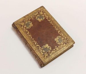 BOCCACE Jean. Il Decamerone di M. Giovanni Boccacio... Florence, héritiers de Philippe Giunta, 14 avril 1527 ; in-4°, reliure du XVIIIe siècle veau acajou, large dentelle dorée en encadrement sur les plats avec grands motifs d'angles mosaïqués, dos à nerfs ornés de motifs dorés, dentelle intérieure et tranches dorées, fente à un mors, coiffes usées. Édition connue sous le surnom de la " Ventissetana", qui a servi de base à toutes les rééditions jusqu'en 1761. Mais il s'agit en fait d'une contrefaçon exécutée à l'identique en 1731 ; elle ne se différencie de l'authentique que par 3 pages mal chiffrées dans l'originale et ici corrigées.