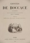 BOCCACE Jean. Contes (Le Décaméron). Traduits de l'italien et précédés d'une notice historique par A. Barbier. Paris, Barbier, 1846 ; très gr. in-8°, reliure ancienne demi-maroquin à coins prune, filets dorés, dos lisse orné en long de motifs romantiques dorés, tête dorée, non rogné, couverture illustrée et dos (Bretault).