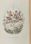 Dessins dans le texte gravés sur bois et 35 PLANCHES DE PAPILLONS ANTHROPOMORPHES RAVISSAMMENT COMPOSÉES ET GÉNÉREUSEMENT COLORIÉES À LA MAIN dans l'esprit de Grandville. - Quelques rares piqûres.