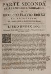JOSÈPHE Flavius. Delle antichità e guerre giudaiche. Venise, Stefano Orlandini, 1727 ; fort vol. in-4° vélin ivoire italien de l'époque, dos à nerfs, pièce orange.