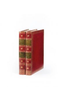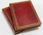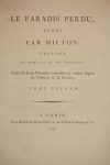 MILTON John. Le Paradis perdu, poème. Édition en anglais et en français. Londres, Jos. de Boffe ; Paris, Defer de Maisonneuve, 1792 ; 2 forts vol. petit in-folio, reliures de l'époque maroquin rouge, dentelle dorée en encadrement sur les plats, doublures et gardes de tabis bleu, dos lisses ornés de motifs dorés, pièces vertes, dentelle intérieure et tranches dorées.