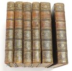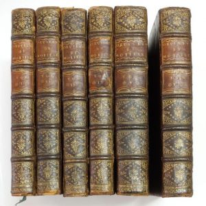 MOLIÈRE. Oeuvres. Paris, [Prault], 1734 ; 6 forts vol. in-4°, reliures de l'époque veau brun, dos à nerfs ornés de motifs dorés, quelques coiffes élimées, fente à plusieurs mors.