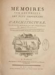 PATTE Pierre. Mémoires sur les objets les plus importants de l'architecture. Paris, Rozet, 1769 ; in-4°, veau tigré de l'époque, dos à nerfs orné de motifs dorés, pièce vieux rouge.