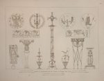 PERCIER Charles et Pierre-François FONTAINE. Recueil de décorations intérieures comprenant tout ce qui a rapport à l'ameublement... : vases, trépieds, candélabres, cassolettes, girandoles, lampes, chandeliers, cheminées, feux, poêles, pendules, tables, secrétaires, lits, canapés, fauteuils, chaises, tabourets, miroirs, écrans...Paris, les auteurs ; Ducamp ; Jombert ; Coeffier, 1801 ; in-folio oblong demi-percaline du XIXe siècle.