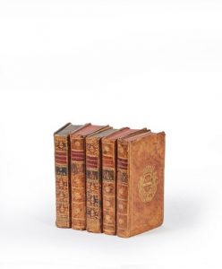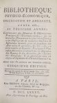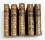 RELIURES AUX ARMES. - BIBLIOTHÈQUE PHYSICO-ÉCONOMIQUE ET AMUSANTE. Paris, Buisson, 1785-1788 ; 5 vol. in-12°, veau marbré de l'époque, armes dorées sur les plats, dos lisses ornés.