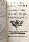ROBERT DE VAUGONDY Gilles. Essai sur l'histoire de la géographie, ou Sur son origine, ses progrès & son état actuel. Paris, Auguste Boudet, 1755 ; in-12°, veau fauve granité de l'époque, armes dorées sur les plats, dos à nerfs orné de motifs dorés, pièce verte.