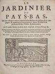 VANDER GROEN J. Le Jardinier des Pays-Bas où sont décrites toutes sortes de belles maisons de plaisance et de campagnes.... À la suite : Vingt-quatre modelles de parterres à la françoise pour embellir toute sorte de jardins... Bruxelles, Philippe Vleugart, 1672 ; 2 ouvrages en un vol. petit in-4°, vélin ivoire du temps à rabats.