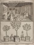 Édition ornée d'une grande vignette de titre et comprenant 78 FIGURES GRAVÉES SUR BOIS LA PLUPART À PLEINE PAGE : 30 PLANS DE PARCS ET DE JARDINS, serres, perspectives, tailles, etc. Déchirure à une planche sans manque. - Bel exemplaire.