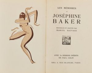BAKER Joséphine. Les mémoires... recueillis et adaptés par Marcel Sauvage. Paris, Kra, 1927 ; in-8° tiré petit in-4°, broché, couverture illustrée.