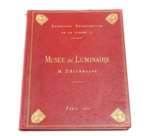 DALLEMAGNE Henri. Musée du Luminaire. Musée rétrospectif de la classe 75. Éclairage non électrique... à l'Exposition universelle de 1900. [Paris, 1900] ; in-4°, percaline rouge décorée de l'éditeur.
