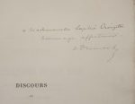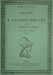 DUMAS fils Alexandre. Discours prononcé à l'Académie française le jour de sa réception, 11 février 1875. Paris, Firmin Didot frères, fils et Cie, 1875 ; in-4°, reliure du temps demi-maroquin vert à coins, dos à nerfs, tête dorée, couverture et dos (Vermorel).