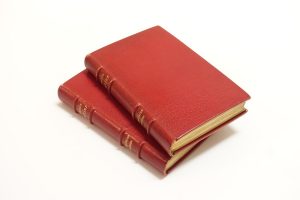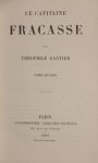 GAUTIER Théophile. Le Capitaine Fracasse. Paris, Charpentier, 1863 ; 2 vol. in-12°, reliures jansénistes anciennes maroquin rouge, dos à 4 nerfs, doublures de maroquin bleu nuit, gardes de soie moirée rouge, tête dorée, couvertures et dos (Marius Michel).