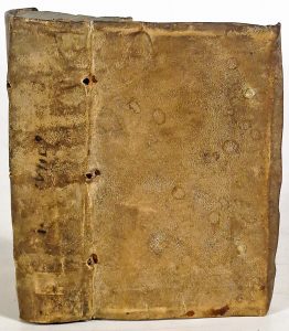 vol. in-16° : 106, 38, 175-[1 bl.] lvs (browned, marginal tears -one repaired on the last lf.-). Contemporary binding : parchment with small flaps, flat spine, blue edges (ties lacking, small lack in the joints, small stains). First edition (?) of this collection of three poems by Neolatins authors. The copy presents characteristics of the first and second editions : the title-page shown the address of Paris, Dupuy as the princeps but there is only one colophon at the end of part III as the second edition. Contains : "Constantinopolitani epigrammaton ad Laurentium Medicen, Petri Francisci filium" by Michele Marullo (1453-1500),- "E’ pwTonaiYviov" or "Eratopaegnion" by Girolamo Angeriano (c. 1480-1530),-"Poetae elegantissimi opera [...]" by Jean Second (1511-1536). The two first given by Louis Martel and the third by Willem Criep (c. 1489- after 1520). # Adams T-146 and T-147 (2d ed.); # Soltész P-723; # STC French 413; # USTC 170638; # not in Machiels. Provenance : Nordkirchen (emblazoned ex-libris). fl Édition originale (?) de cette collection de 3 poèmes d’auteurs néo-latins (Marullo, Angeriano et Second). Plein parchemin de l’ép. (bruni, déch. marg., pet. taches).