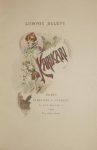 HALÉVY Ludovic. Karikari. Paris, L. Conquet, 1888 ; in-12°, reliure janséniste de l'époque maroquin rouge vif, dos à nerfs, doublures de même maroquin entièrement ornées d'un décor doré et mosaïqué, dentelle intérieure, tranches dorées sur témoins, couverture illustrée en couleurs, étui (P. Ruban).