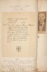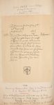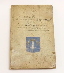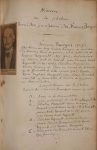 JEANNE D'ARC.- DESCENDANCE DE SON FRÈRE PIERRE D'ARC. Filiations des familles Macquart, Bourgois, Regnault, Gensdepied, La Pérouse- Bourgois-Marcoux... Manuscrit du début du XXe siècle (en partie d'après un modèle du XVIIIe siècle ?) ; grand in-folio de 120 pages et 18 feuillets blancs, vélin ivoire du XVIIIe siècle avec armes de Jeanne d'Arc peintes sur le premier plat et titre sans rapport apparent avec le manuscrit.