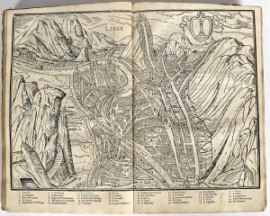 marg. -aussi sur la carte-, qqs déch. renforcées not. aux 2 h.-t. et avec manque de texte à la dernière p., qqs pp. lég. brunies, trous et galeries de vers, qqs rouss. ou taches, pet. déch. dans le texte p. 111, qqs pp. à la fin part. déreliées). Broché (rel. absente, ff. lég. brunis, mention d’app. ms. sur le f. sup.). Édition originale de la traduction parue la même année que la princeps en italien (également par Silvius) et traduite par Frangois Flory (originaire de Lille et directeur d’une école de commerce à Anvers). Important ouvrage chorographique sur les anciens Pays-Bas par Guicciardini (1521-1589), patricien florentin installé à Anvers. Les trois premières pages (titre, armoiries du roi d’Espagne et portrait de Philippe II) sont serties d’un encadrement gravé sur bois représentant un portique ornementé de six allégories. Illustré de 15 planches sur doubles pages gravées sur bois, précédées d’un titre, figurant la cathédrale d’Anvers, des vues perspectives (Louvain, Bois-le-Duc, Malines et Ypres), des plans de ville (Bruxelles, Anvers, Amsterdam, Gand, Bruges et Liège) et des cartes de province (Brabant, Utrecht, Flandre, Hainaut, Hasselt). Comprend également 2 cuivres hors texte figurant 1 carte sur double page des Pays-Bas par Cornelis de Hooghe et 1 vue dépliante de l’hotel d’Anvers. Datée de 1565, cette dernière porte le nom de Silvius et est plus grande (c. 30,5 x 56 cm) et plus belle que celle qui figure dans l’originale italienne. # Touwaide 17/32; # Guicciardini illustratus 2; # Tiele n° 424; # Adams G-1537; # Machiels G-565; # BT 1363; # Funck 325; # pas dans STC Dutch, BB, Matagne.