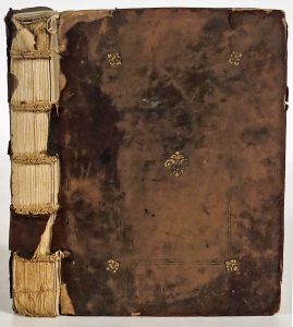 lvs (wormholes in the first half, small marks of folds in the beginning, dampstains in the margins -2 largers in lvs 69 and 70, first quire partly unbound, lvs 153 and 154 slightly yellowed otherwise fresh copy). Contemporary binding : calf, decorated boards with agilt central fleuron encircled by 3 blind fillets with gilt fleurons in the angles, title with pen on the top edge (entirely rubbed with ornaments partly left, spine lacking, upper board partly unbound, corners and parts of the edges dulled). Treatise on criminal law (1„ed. : 1551) with a manual of procedures by the famous Belgian jurist and humanist de Damhoudere (1507-1581), first book on this particular subject ever published in Northern Europe. Edition given by the jurist from Mantova Leonardo Legge (half of 16. Cent). Copy with text on two columns and with the printer’s mark on title-page. Provenance : Ludwig de Damhoudere 1585. Ludwig was the only child of the author and member of the Council of Flanders. Inscription dating from 4 years after his father's death, involving perhaps this book is coming from the library succession of his father (handwritten mention); de Nuefbourg 1715, counselor at the Chamber of Accounts in Normandie according to a handwritten annotation (id.). # Adams D-14 (ed. 1555); # USTC 863927; # Edit16 32839; # Dekkers 44; # not in STC Italy, Soltész, Machiels. fl Traité de droit criminel avec manuel de procédures juridiques, le dans son genre publié en Europe du Nord, donné par le juriste italien L. Legge. Mention d'appartenance du fils de l'auteur, Ludwig, datant de 1585. Plein veau de l'ép. (trous/galeries de vers dans la 1re moitié, mouill. marg., rel. frottée avec perte partielle du décor, dos manquant, plat sup. part. dérelié).