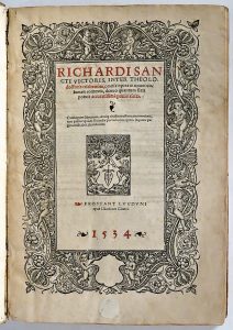 (Religion) — Richardus Sancti Victoris.- Omnia opera in unum volumen contexta, denuo quantum fieri potuit accuratissimè praelis ascita [...]. Prostant Lugduni [Lyon], Jacobum Giunti (excudebant suis typis Nicolaus Petit et Hector Penet), 1534. 2...