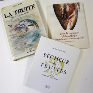- Albert Petit " La truite. Pêche à la mouche artificielle ". Ed. de l'Orée. 1982. Illustrations en noir. Une fente de papier sans manque à la jaquette. Bon exemplaire de cette belle réédition.