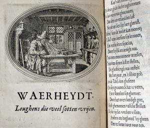 Burgundia, Antonius à; Gheschier, Petrus.- Des wereldts proef-steen ofte de ydelheydt door de waerheyd beschuldight ende overtuyght van valscheydt [...]. Antwerpen, Wed. ende Erfg. van Jan Cnobbaert, 1643. In-4° : [32 incl. gegrav. titel]-368-[1]...
