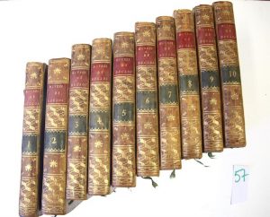" OEuvres complètes ". Imprimerie de Fain et Compagnie, 1806. Ensemble de 10 volumes in-12 relié pleine basane du temps. Dos lisses ornés, pièces de titre de maroquin rouge. 5 portraits hors texte sous serpentes. Coiffes défraichies, coins classiquement frottés, une petite fente sur un mors au premier volume, gardes légèrement roussies. Ex. libris. Ensemble en bonne condition.