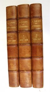 A. Loisy " Mémoires ". E. Nourry éditeur, 1930 / 1931. Ensemble de 3 volumes in-8 reliés demi basane à coins, dos à nerfs titrés. Couvertures conservées. Cachets sur les plats et un léger frottement de cuir sur un caisson au tome 1. Bel exemplaire bien relié.