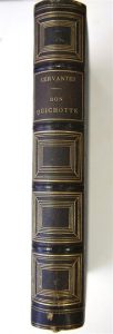 " L'ingénieux hidalgo. Don Quichotte de la Manche ". Paris, Victor Lecou, 1853. In-4 dos chagriné d'édition, caissons à décor géométrique. Toutes tranches dorées. Traduit et annoté par Louis Viardot. Vignettes de Tony Johannot. Rousseurs claires éparses sans gravité. Gardes un peu salies. Bon exemplaire bien relié.