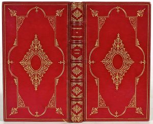 titre gravé et portrait]-158 pp. Reliure d'inspiration xviie s. par Capé : plein maroquin rouge, plats finement fleuronnés d'un double cadre, fleurons d'angle et motif central fleuronné dorés, dos à nerfs et caissons finement fleuronné doré, filets et fine roulette ornée dorés sur les coupes et remplis, tranches dorées. Même édition que supra. Le portrait est présenté avant la légende (état non signalé par les bibliographies). # Willems n° 1797; # Bibl. esoterica n° 3275; # Caillet n° 8081; # Brunet IV-105.