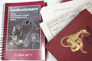 " Grubenlampen. Offenes bergmännisches Geleucht des deutschsprachigen Raumes ". Arbeitkreis Grubenlampen / Siegerlandmuseum, Oberes Schloss zu Siegen, 1991. In-4 relié spirale d'édition. 187 pages. 292 photographies en noir et blanc. Bon exemplaire.