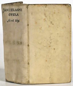 Erasmius, Janus.- Opera posthuma [...]. Amstelodami, Johannis van Someren, 1691. 2 stukken met doorlopende paginering in 1 vol. in-12° : [16 incl. gegrav. titel]-411-[5 waarvan 3 bl.], 480 pp. (sporadische vlekjes). Eigentijdse Hollandse perkamenten...