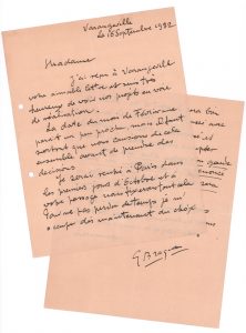 BRAQUE GEORGES (1882-1963) — Lettre autographe signée adressée à une inconnue. — Varangeville, 16 septembre 1932, 2 pages in-4 à l'encre sur papier (trous de classeur).
