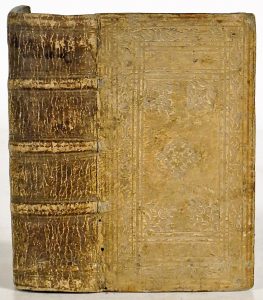 mouill. marg. dans la 2e partie, f. blanc entre les 2e et 3 parties part. découpé, piqures dans la 3e partie). Rel. de l’époque : pleine peau de truie sur ais de bois, plats décorés à froid de filets, roul. fleuronnées et fleurons, dos à nerfs sertis de filets à froid, tr. bleues (lég. frottée par endroits, coins lég. émoussés, notes mss de l’époque sur la garde inf.). Première édition des "Épigrammes" du poète latin Martial (40-104) données par l’historien et philologue néerlandais Petrus Scriverius (1576-1660). Suivi par les "Animadversiones in Martialem" de ce dernier portant sur le "Ad librum spectaculorum", souvent placé à tort en tête des "Épigrammes". L’ouvrage compte également des notes et commentaires dans le troisième partie des philologues ou traducteurs Angiolo Poliziano (1454-1494), Adrien Turnèbe (1512-1565), Jean Brodeau (+ 1565), Joseph Scaliger (1540-1609) et Janus Gruter (1560-1627). Vignettes de l’imprimeur Maire à la devise "Labore et constantia" sur les deux titres. # Dibdin II-230/231 ("Excellente édition"); # Brunet III-1491. Provenance : Franz Quante (mention d’app. ms.).