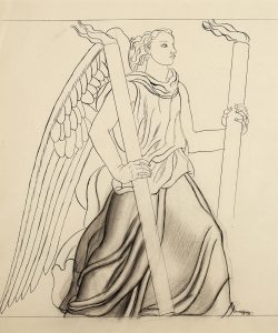 DUPAS JEAN (1882-1964) — «Ange aux flambeaux». — Dessin sur papier au fusain et encre de Chine. — 43,7 x 34 cm.