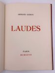GODOY ARMAND (1880-1964) — Laudes. — Paris, 1927. — In-folio. — Plein maroquin janséniste bordeaux doublé, gardes de moire bordeaux, dos à six nerfs titré or, tranches dorées, étui (Canape).
