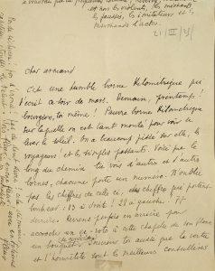 «C'est une humble borne kilométrique, qui t'écrit ce soir de mars. Demain, printemps ! bourgeon, toi même ! Pauvre borne kilométrique sur laquelle on est tant monté pour voir se lever le soleil. On a beaucoup pissé sur elle les voyageurs et les simples passants. Voici que le long du chemin tu vois d'autres et d'autres bornes, chacune porte un numéro. N'oublis pas les chiffres de celle-ci, des chiffres qui portent bonheur 13 à droite ! 28 à gauche ! 77 derrière [...]».