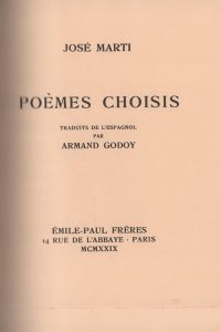 MARTÍ JOSÉ (1853-1895) — Poèmes choisis, traduits de l'espagnol par Armand GODOY. — Paris, Émile-Paul frères, 1929. — In-4, plein maroquin grenat janséniste, doublures et gardes de moire, tranches dorées, couverture et dos conservés...