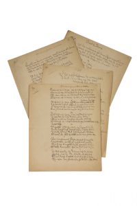 MERMOZ JEAN (1901-1936) — Chant de Damné, L'Art, Découragement et Amertume, et Quand une femme m'aimera, manuscrit autographe de quatre poèmes. — S.d. [vers 1918-1920], 5 pages in-4 à l'encre sur papier.
